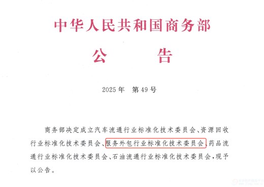 近日,商务部正式组建服务外包标准化委员会。这一关键举措,意味着我国服务外包产业即将迈入以标准化、规范化为核心特征的高质量发展新阶段。委员会的设立,既积极响应了国家推进服务业标准化建设的战略部署,又为服务外包行业提供了统一、明确的规范指引,对提升中国服务外包产业的国际竞争力具有重要推动作用。据悉,该委员会将吸纳政府部门、行业企业、科研机构等多方代表参与,共同开展服务外包领域国家标准与行业规范的研究和制定工作。